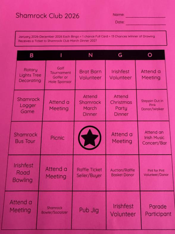 The Shamrock Club Participation Bingo Card 2026