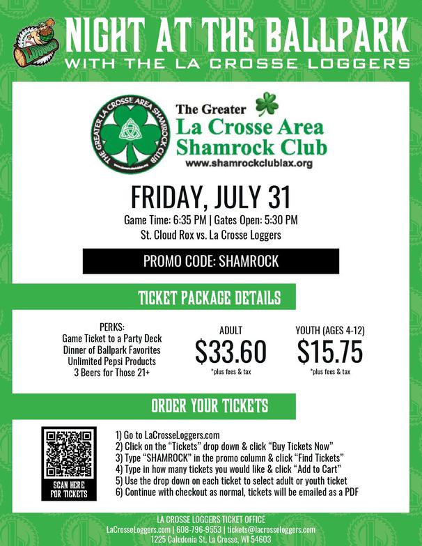 31st-Shamrock Club Loggers Game. $33.60-Gate opens at 5:30PM.
